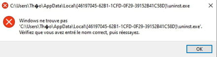 Désinstalle-le avec RevoUninstaller si tu as ce message ferme-le et continue RevoUninstaller va le désinstaller via le Scan Avancé, VOIR CETTE PAGE.