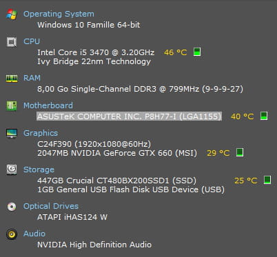 Voici une capture Speccy pour que vous puissiez avoir un aperçu de ma config actuelle :
