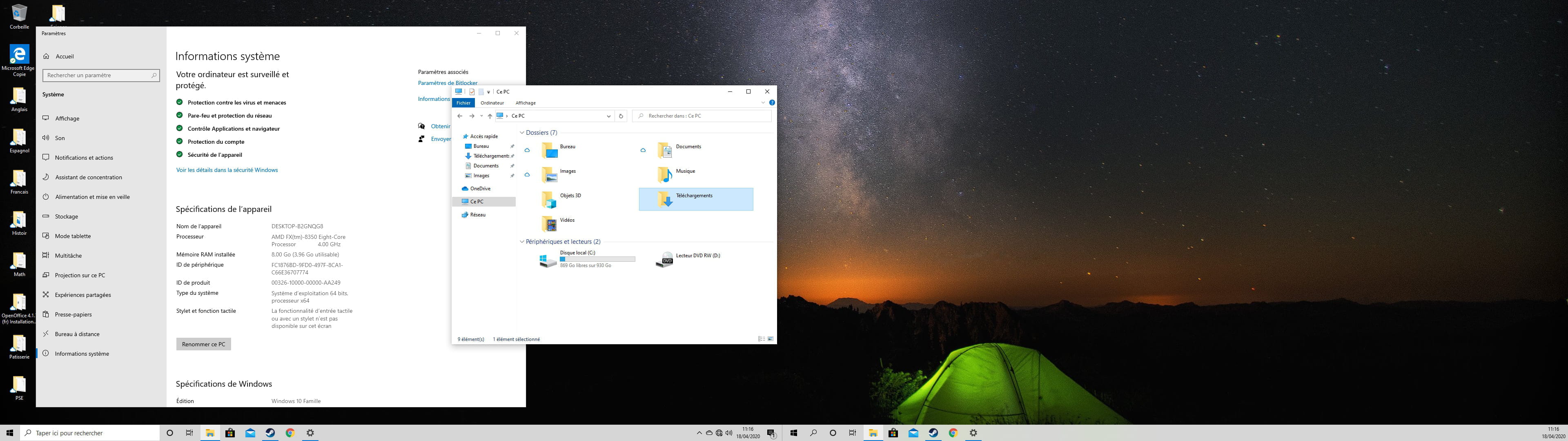 Bonjour a tous ! Alors voila aujourd'hui j'ai regler (a peux pres) mon soucis avec ma conexion désormais je me demande si mon ordinateur a bien assez de RAM pour fair tourner mes jeux dans de bonne condition car sur mon disque locale j'ai 856Go libre se qui me semble a l'aise mais dans spécifications de l'appareil il y a :Mémoire RAM installée 8Go(3.96Go Utilisable).