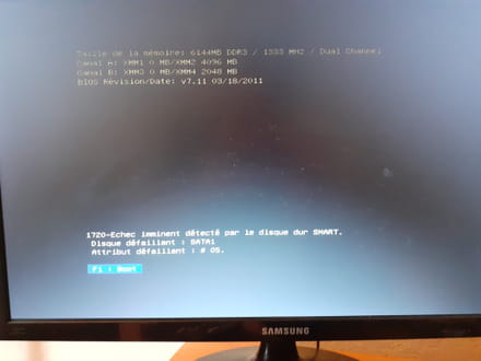 1: J'ai acheté un disque dur seagate suite à ce message d'erreur, un fois le DD neuf monté j'ai toujours ce message d'erreur. Le DD est au format MBR avec 2 partitions.