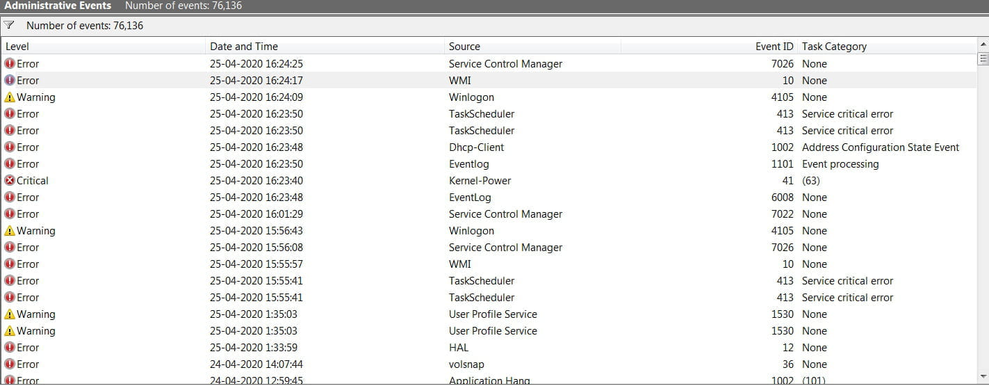 J'ai fait une capture d'écran de l'observateur d'évenements, au cas.