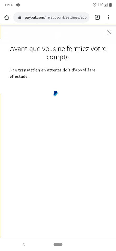 Depuis debut avril une transaction paypal non effectué bloque la fermeture de paypal.
