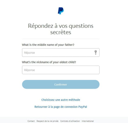 Client de Paypal, mais sans utilisation depuis longtemps, je souhaite un nouveau Password. Un questionnaire m'est alors proposé avec des questions personnelles "Fantaisistes", comme "Quel est le prénom de votre fils aîné ?" OR, je n'ai pas d'enfant !!!! De plus aucun adresse ou lien pour un Contact sans disposer d'un Password.... Que faire ? Qui contacter ? Une adresse sans password nécessaire, svp . Merci d'avance...