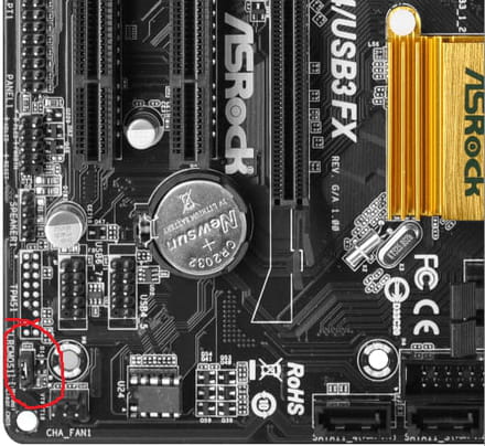 Tout les fabricants ne mettent pas ce cavalier dont le mode d'emploi est sur la documentation du fabricant de la carte mère.