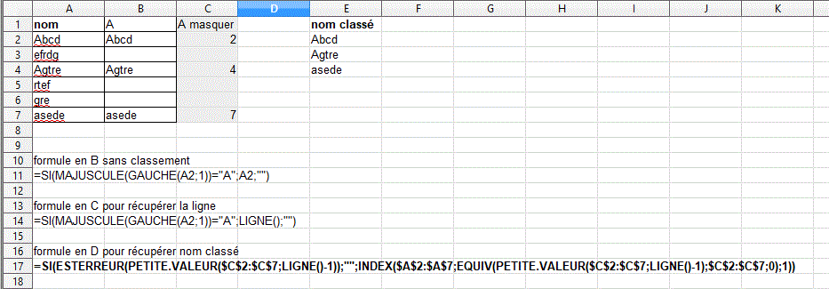 Si le texte de la colonne B de la feuille "Genérale" commence par "A" alors recopier toutes les lignes qui ont A pour première lettre dans les cases B