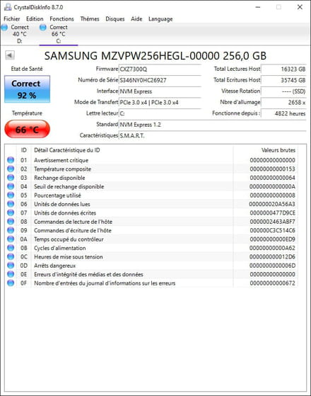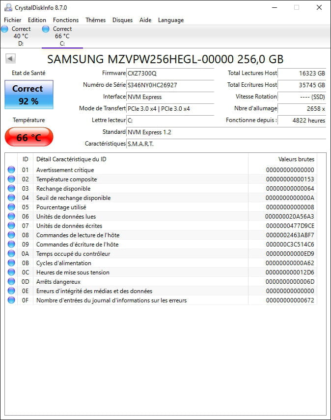 Test antivirus et spyware ok. Pas d'autre problème noté.