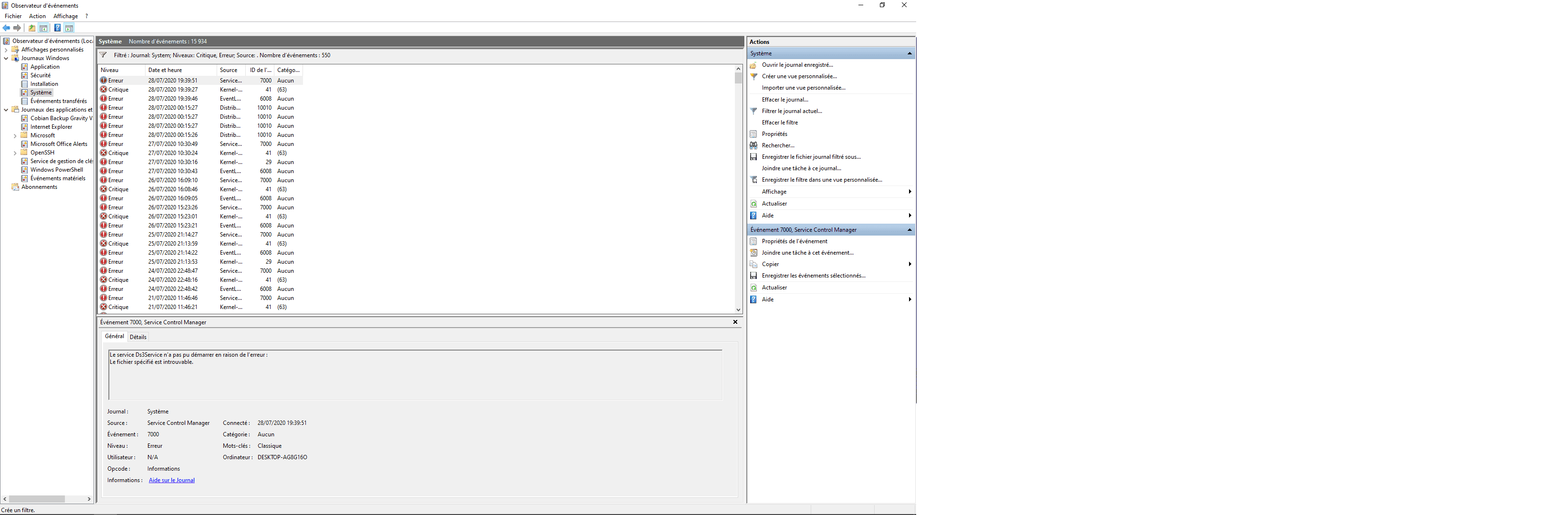 salut, quel soucis as tu ? tu peux voir toutes les erreurs dans l'observateur d'évenenement ( raccourci windows + r puis tape eventvwr)