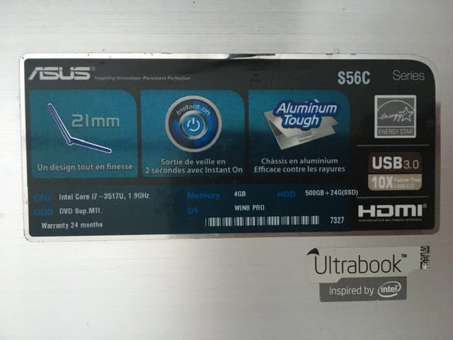 J’ai une photo de l’étiquette sur l’ordi (c’est un portable), je ne sais pas comment insérer une photo ici.