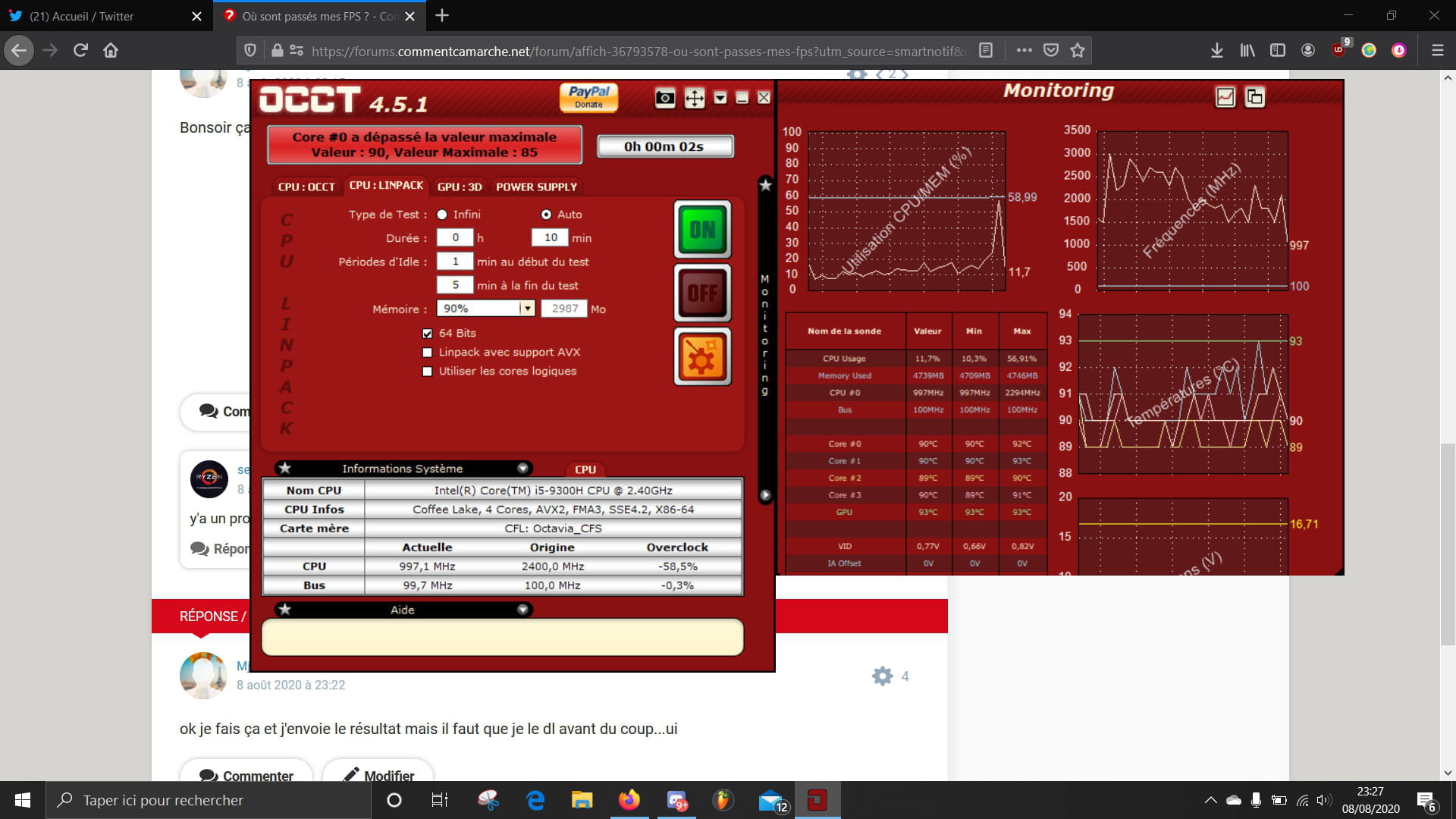 Salut alors en fait mon pc galère au niveau des performances en jeu et je ne sais pas du tout pourquoi alors qu'il est assez récent ( je l'ai acheté en novembre) ma carte graphique est plutôt bonne GTX 1660 TI , j'ai un processeur intel i5 9300H donc encore une fois c'est pas de la merde mais les perfs de mes jeux actuellement puent leurs morts. Sachant que pour les jeux en 2D il n'y a aucun problème mais dès qu'il y a de la 3D fait de la merde, par exemple je tourne à genre 15 fps max sur Minecraft alors que je tapais les 200 fps facilement avec de shaders, pac de textures etc... enfin bref j'ai tout essayé mais je comprends rien si quelqu'un peu m'aider ce serait vachement sympa