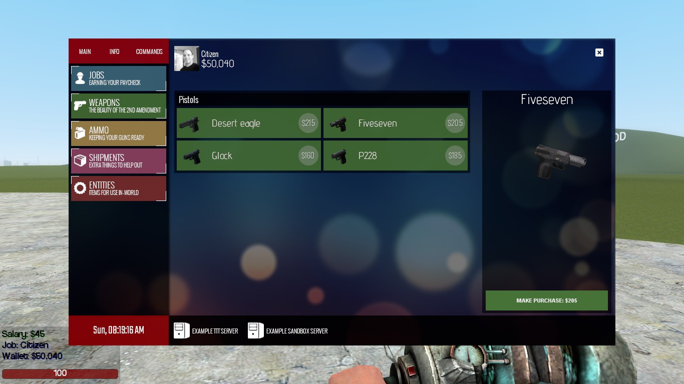Pour les job, des objet, a acheter, voir le règlement et des redirection vers la boutique, le discord, etc