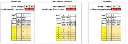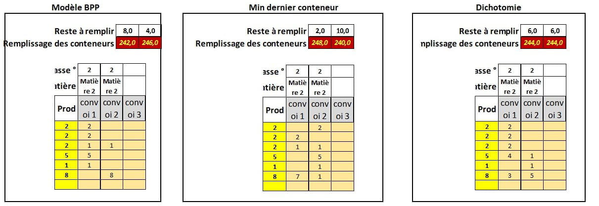 Alors je penses pas que j'en suis jusqu'à dire l'optimisation via différents modèles et démarches. Surtout ici pour au final, obtenir un même nombre de conteneurs remplis, donc sans grand intérêt d'un point de vue nombre entier de conteneur requis pour assurer la production.
