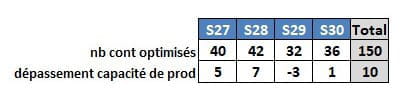 Ou alors ne pas autoriser un calcul multi-semaine sur la même feuille de calcul. Et ainsi faire soit 4 feuilles d'optimisation (une par semaine) soit supprimer la possibilité d'optimiser sur 4 semaines.