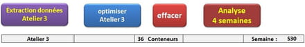 A partir d'une instance de production envisagée sur 4 semaines par atelier, la macro Excel-vba minimise le nombre de conteneurs nécessaires pour réaliser cette production.