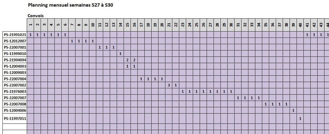 Lorsque que la case de production est vide, cela veut dire que nous n’avons pas de pièce fabriquée cette semaine et donc pas de convoyage.