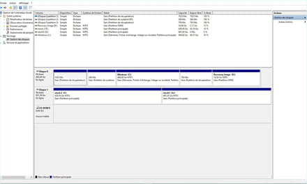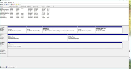 Envoie des captures d'écran de ce que tu indique et particulièrement du gestionnaire de disque.