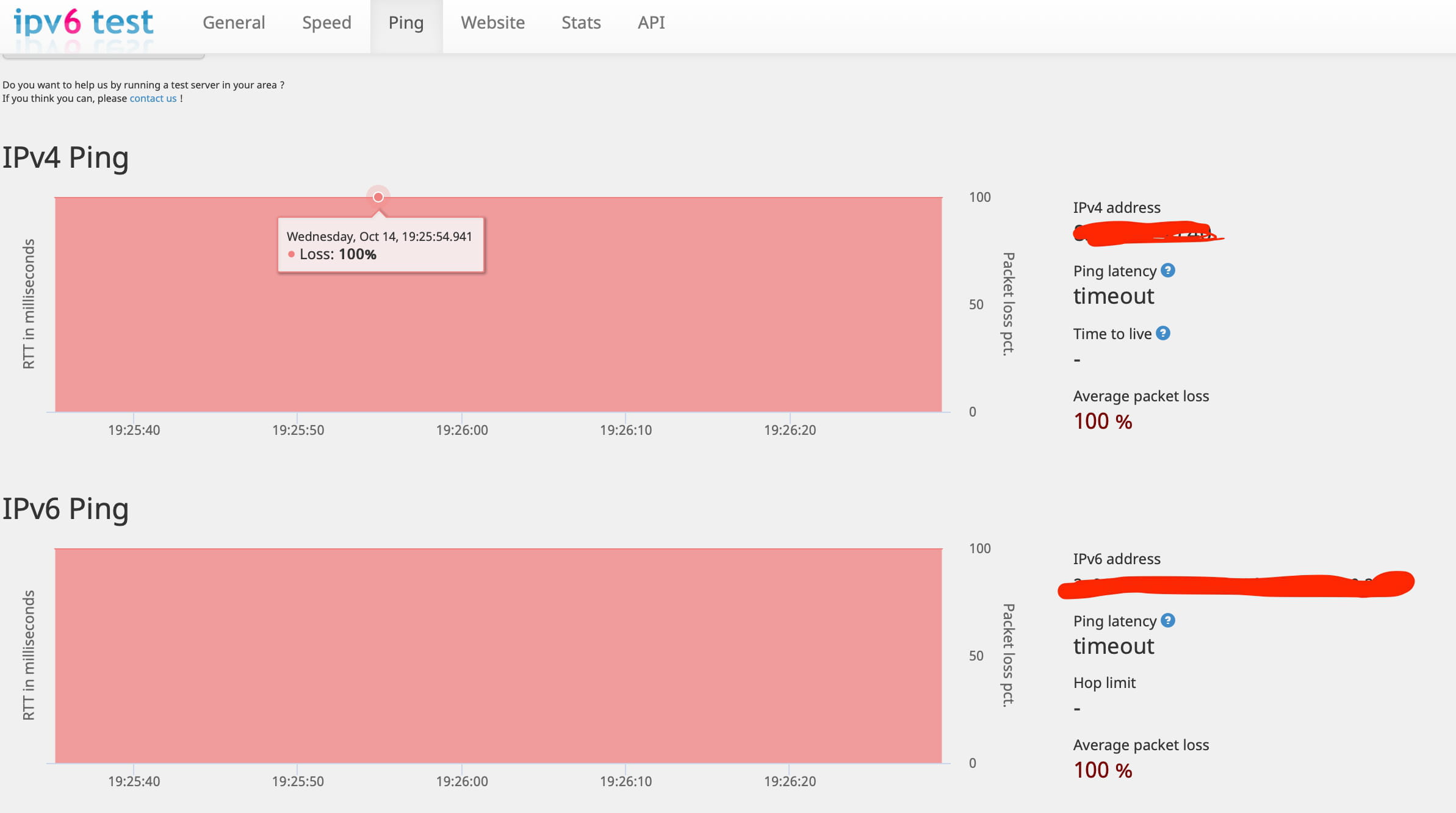 ce test de ping se fait en sens inverse du site vers chez toi, beaucoup de box loquent les ping qui viennent de l'internet.