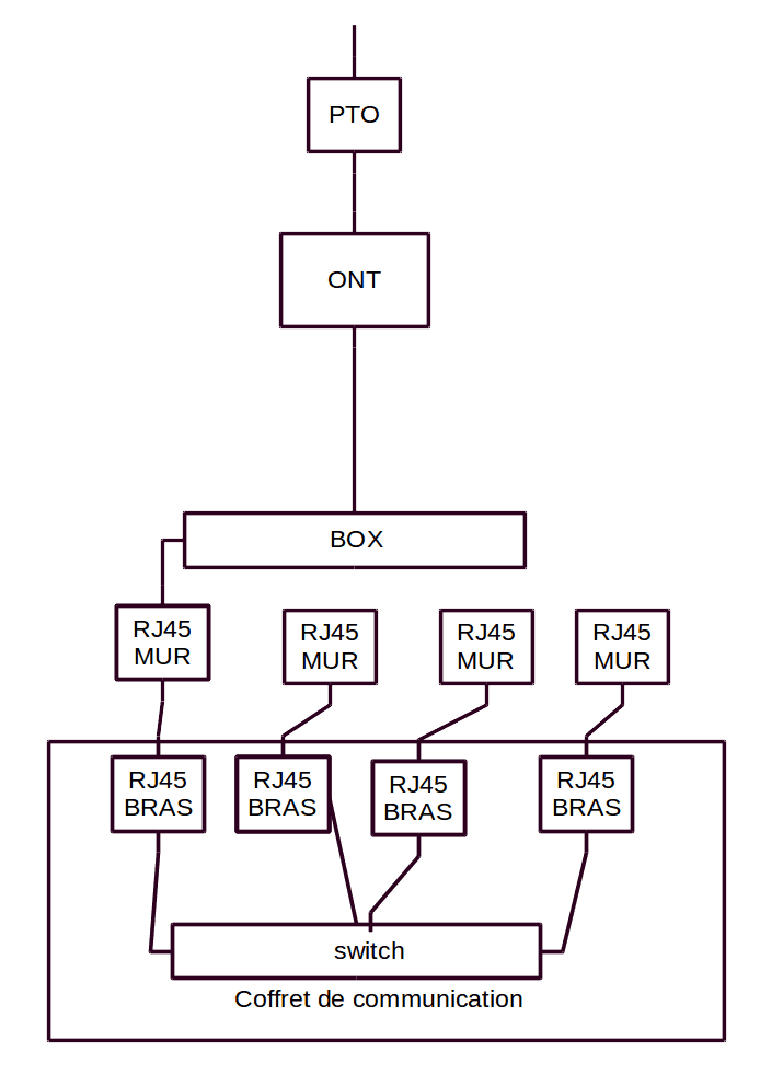 ensuite tu pourras investir dans un switch à installer au coffret de communication afin de réaliser ceci: