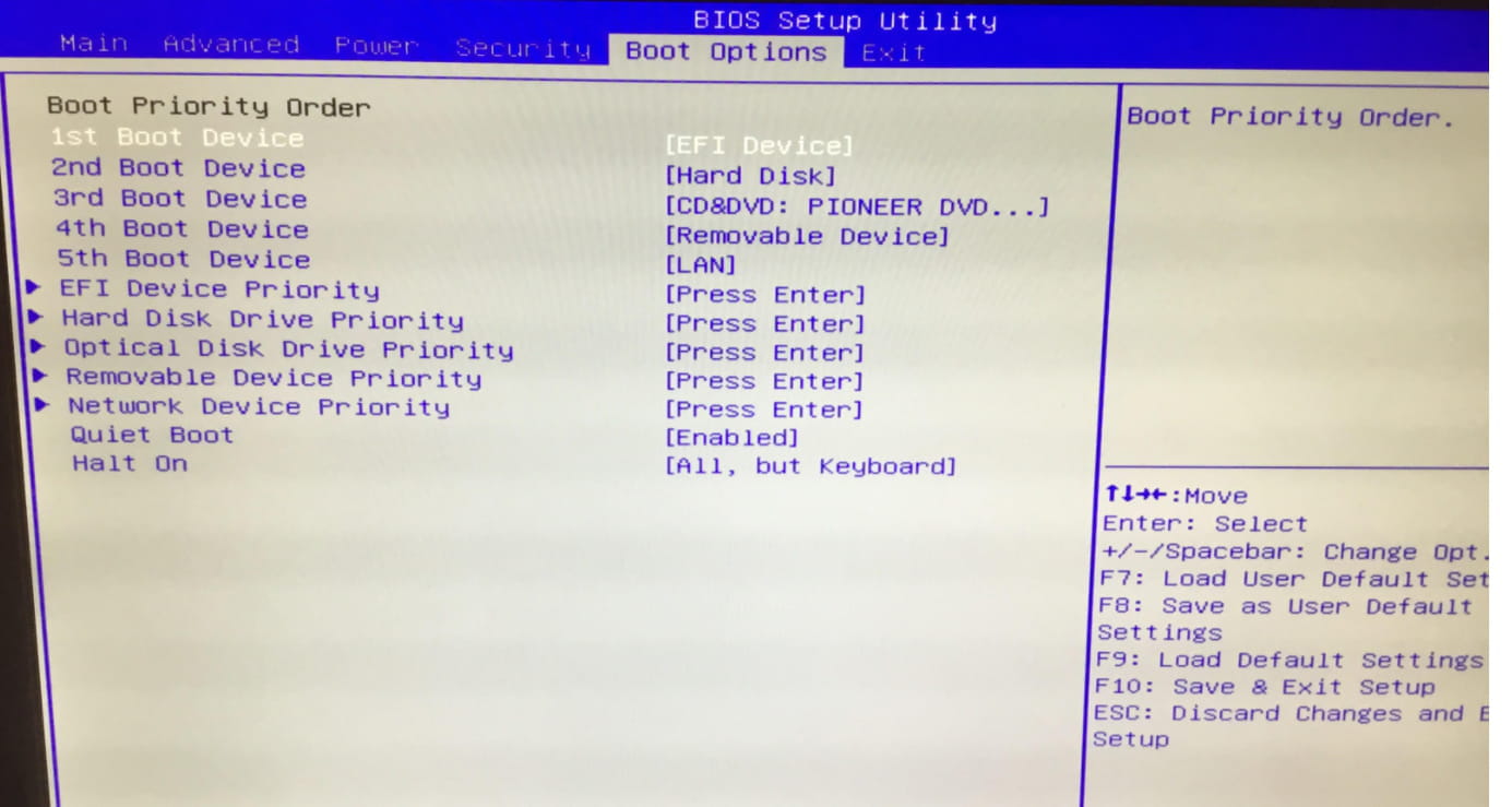 J'ai donc essayé de remettre les paramètres par défaut dans les options Boot du bios, mais rien à faire cela ne fonctionne toujours pas.