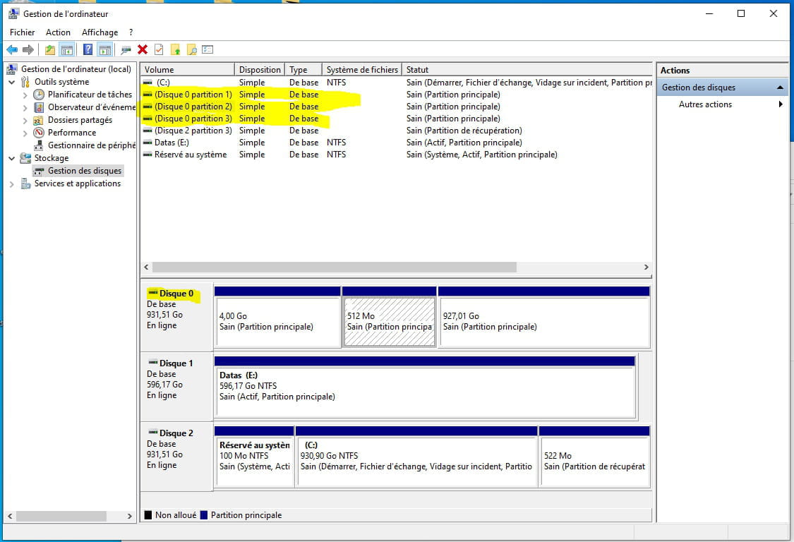 Une copie d'écran de ton Gestionnaire de disques serait envisageable pour comprendre.
