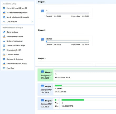 Le détail des disques sera plus facile à lire que le "trop vieux" Gestionnaire de Disques de Windows.