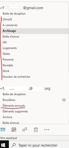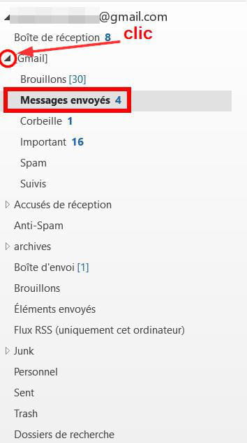 Or, problème : Il n'y a pas "Elements envoyés" pour ma messagerie Gmail.