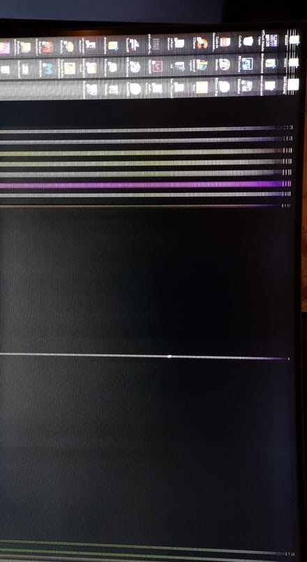 Quand j'allume mon PC après plusieurs heures arrêté, des barres verticales et horizontales apparaissent sur mon écran comme sur la photo. Parfois, je peux encore voir le curseur et naviguer sur mon PC avec ces barres et à d'autres moments l'écran reste figé et je ne peux plus rien faire. Les barres apparaissent au fur et à mesure jusqu'à prendre tout l'écran. Il peut rester sans buger pendant 2-3 jours et puis buger d'un seul coup même sans éteindre le PC.
