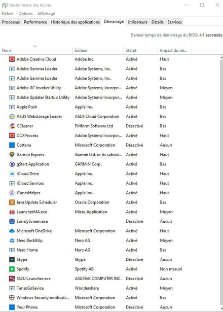 bon ok c'est fait je te tiens au courant, et pour les taches de démarrage, la plupart ne servent pas à grand chose.