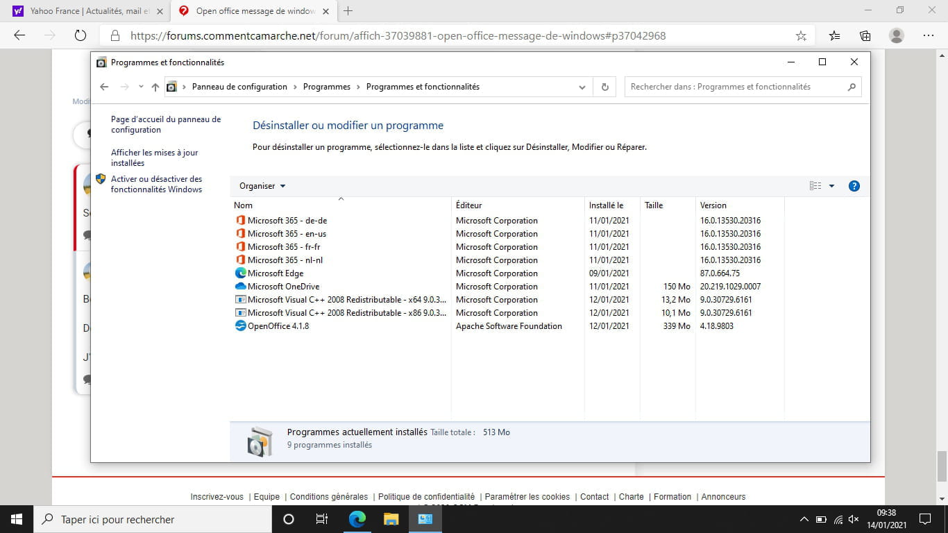 Et sinon puisque vous avez Open Office et que 365 est payant, vous pouvez désinstaller la suite bureautique en toute langue.