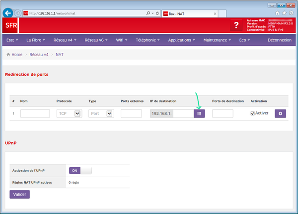 Je cherche à ajouter une redirection de port NAT sur ma Neufbox 6.