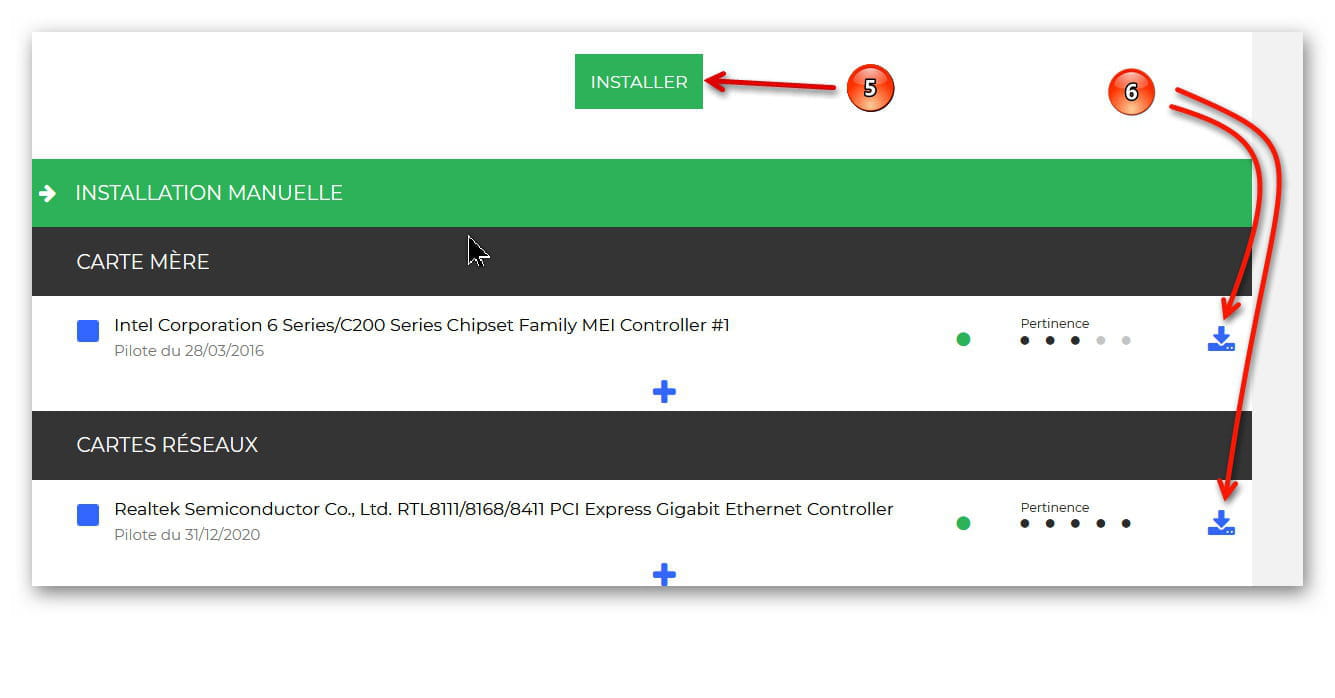 Dérouler la page jusqu'à atteindre la liste de pilotes proposés, par exemple chez moi