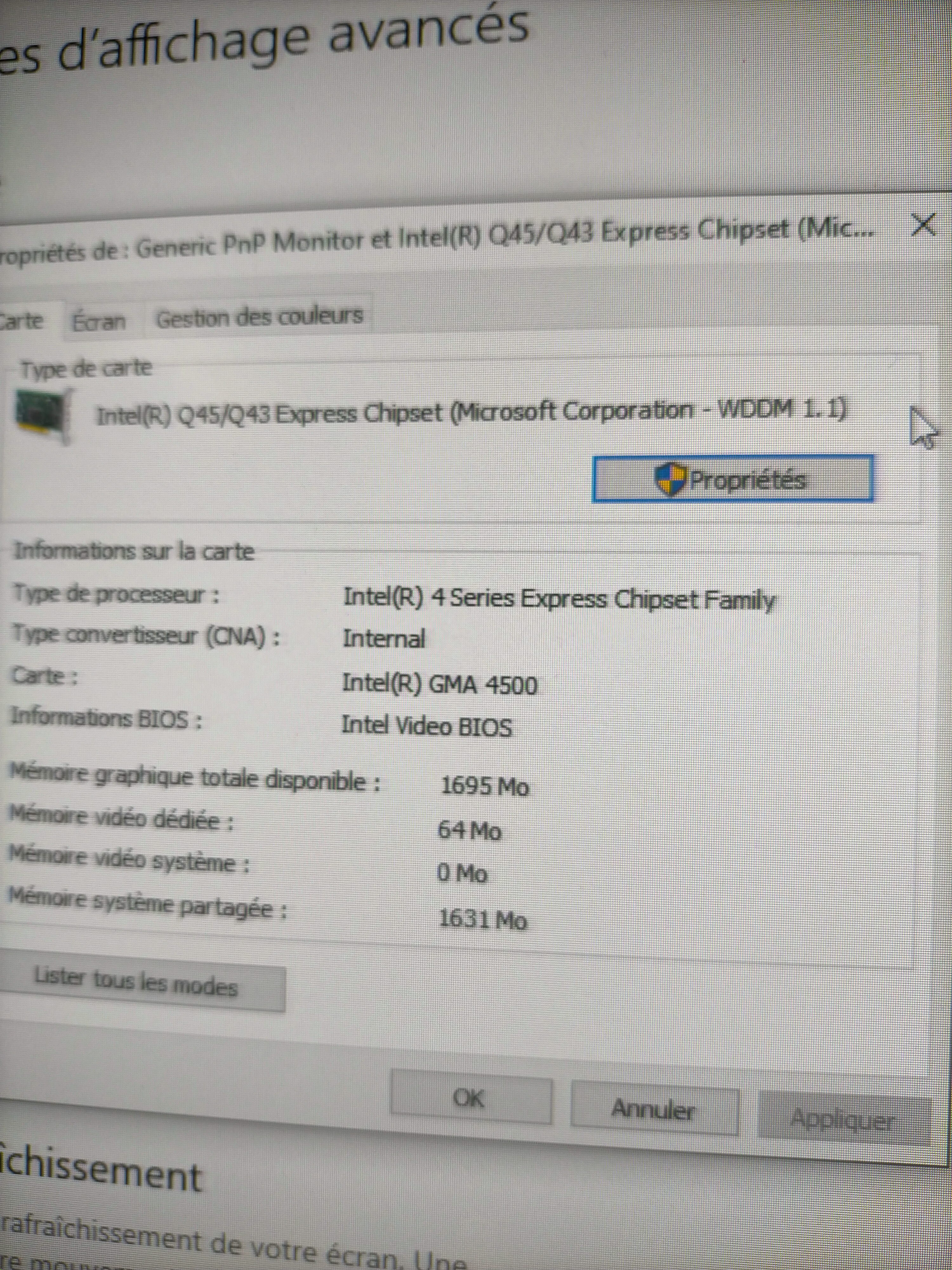 Bonjour, j aimerai savoir comment reduire sa memoire partage j ai en tout j ai 1631mo memoire systeme partage et 64mo de memoire video dedie et en tout j ai 1695mo de memoire graphique totale mes je n arrive pas a reduire la memoire partage vous pouvez m aidez voici les information du pc Nom de l'appareil DESKTOP-TTDVV6S