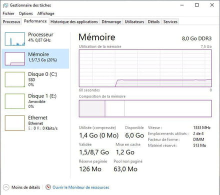 J'ai actuellement un ordinateur portable avec une barrette de 8 Go de RAM.
