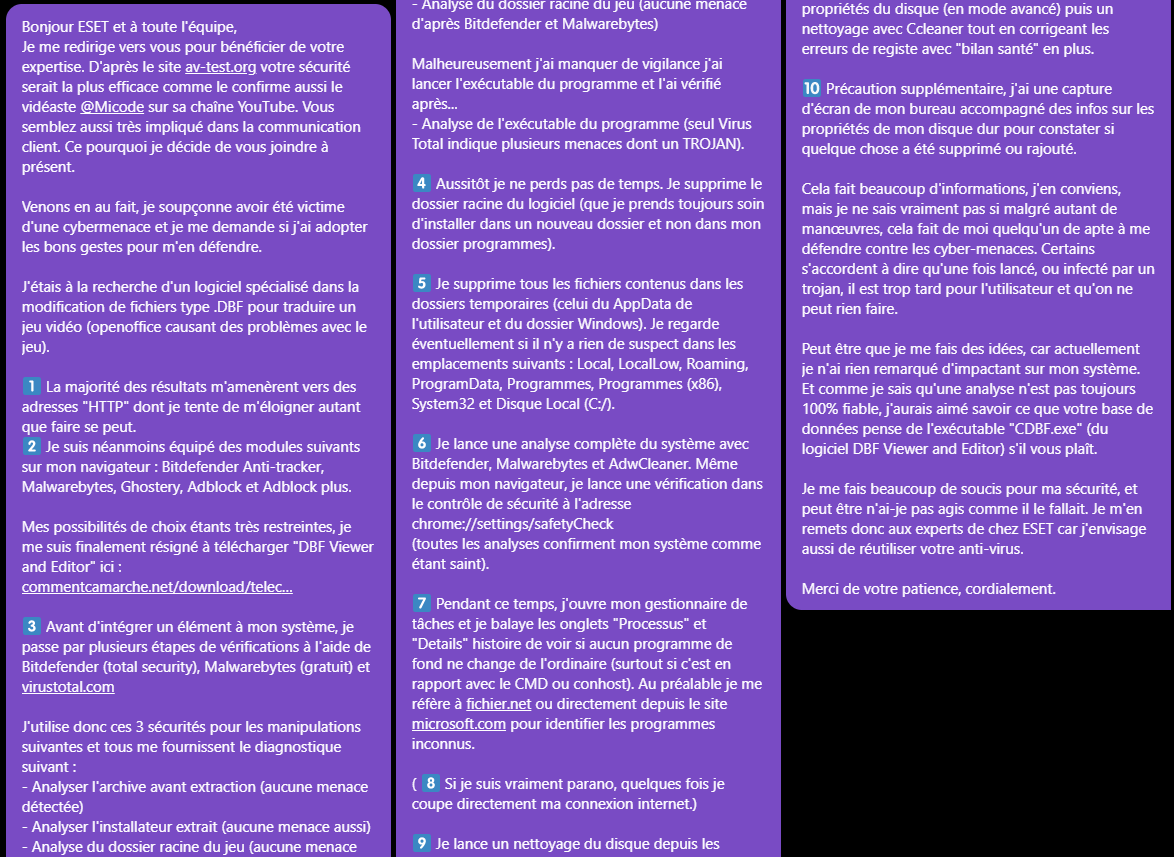 :'( Si y a des bons connaisseurs capables de m'orienter vers des logiciels sûrs et efficaces en matière de traitement DBF, vraiment, merci du fond du cœur ! Car la sensation de compromettre la sécurité de mon système à chaque setup ne me fait pas trop rêver pour être honnête...