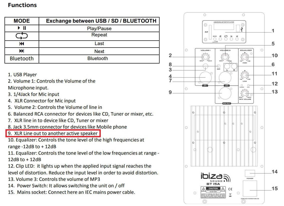 J’ai une enceinte IBIZA BT15A de 500W (active)