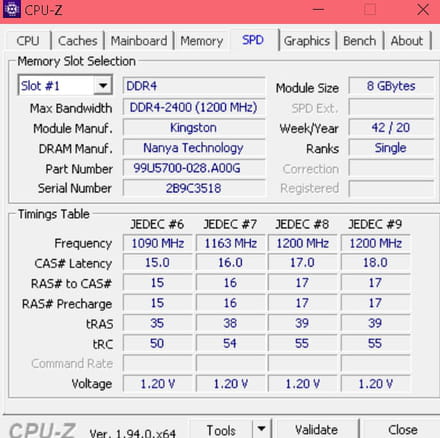 Peux tu nous montrer une capture d'ecran de l'onglet SPD de CPU-Z (une image pour chaque slot) ?