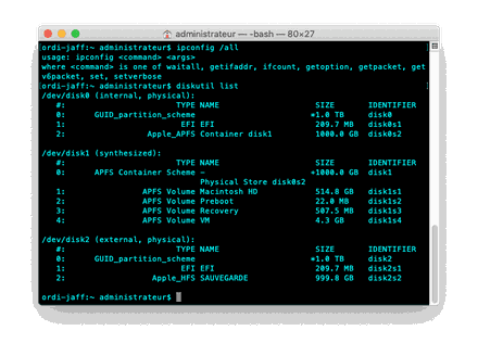 Dans le Terminal, j'ai fait la commande diskutil /all