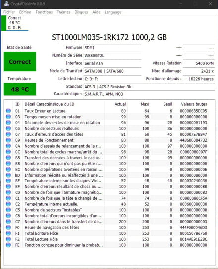 non pas obligé passe par un live CD qui contient CrystalDiskInfo voir :