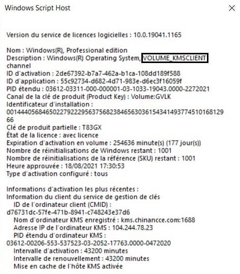 dans CMD en ADMIN, copie/colle cette commande --> slmgr /dlv et clique sur Enter