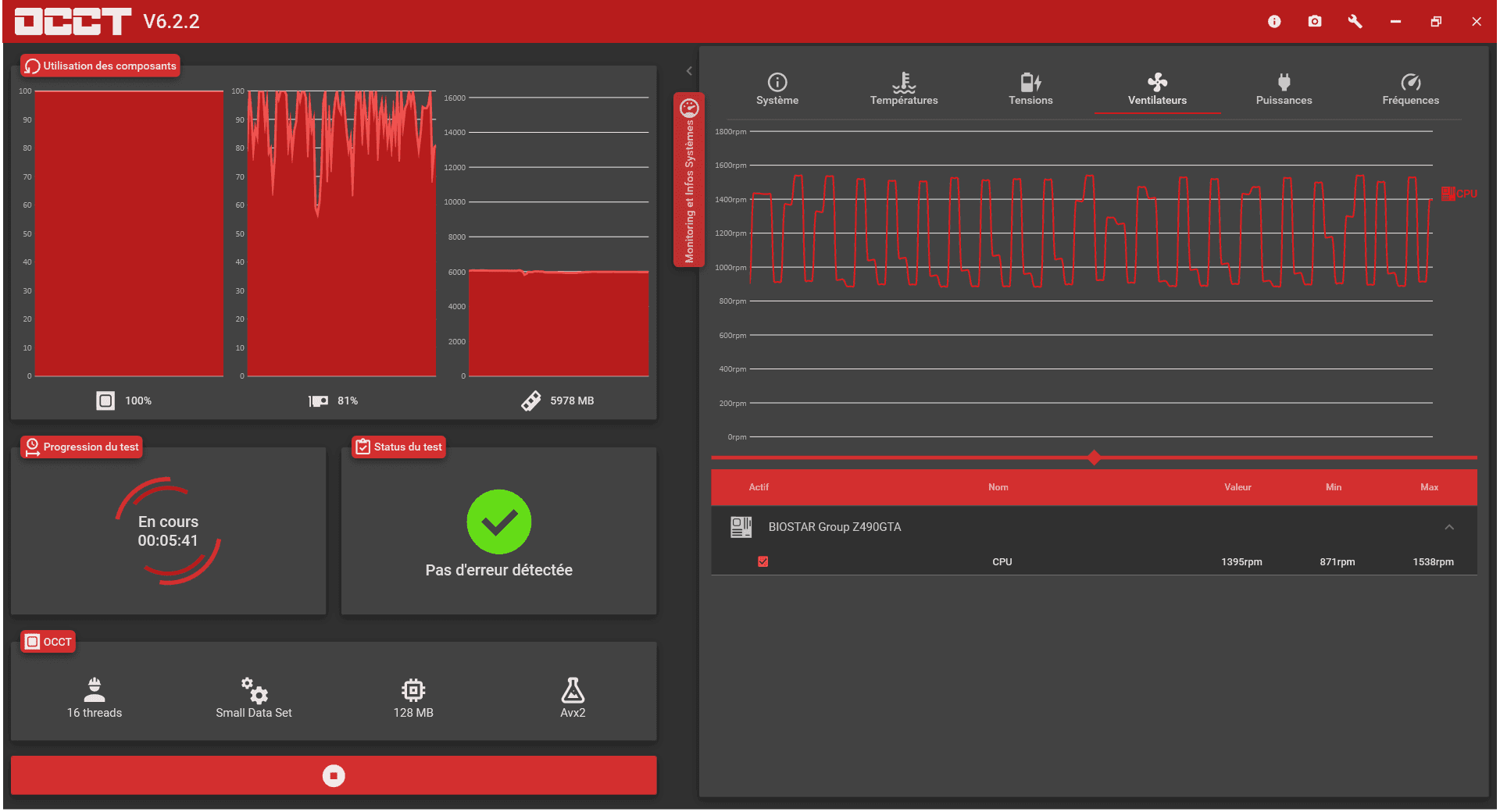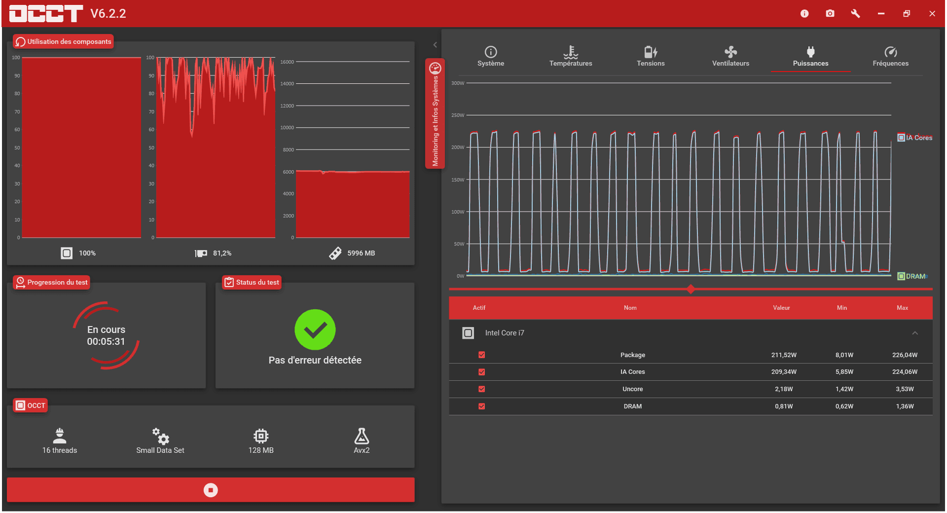 ensuite lance une test occt en Small data set pendant 10 min puis a la fin du test tu auras un rapport a enregistrer et a m'envoyer. attention tu n'a qu'un seul essaie avec la version gratuite