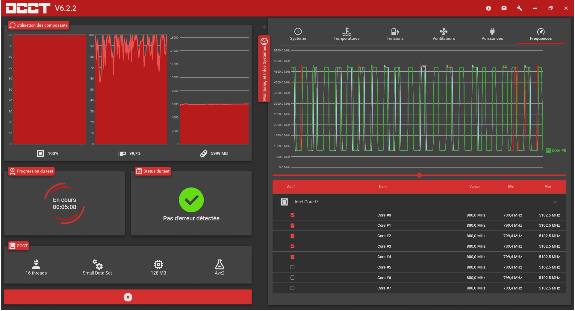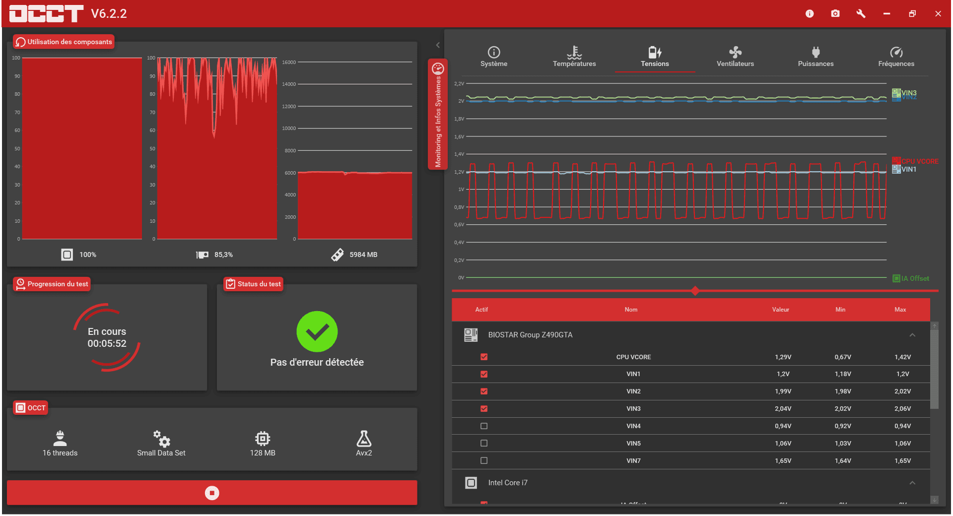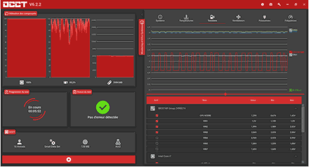 Voici un autre screen de test OCCT avec uniquement les tensions, celle du +5V et du +12V ne bougent pas, en revanche celles du CPU oui, j'aimerais bien en découvrir la cause pour pouvoir réparer ça moi-même, je n'ai franchement pas très envie d'aller dans un magasin d'informatique alors que le pc n'a même pas 1 mois...