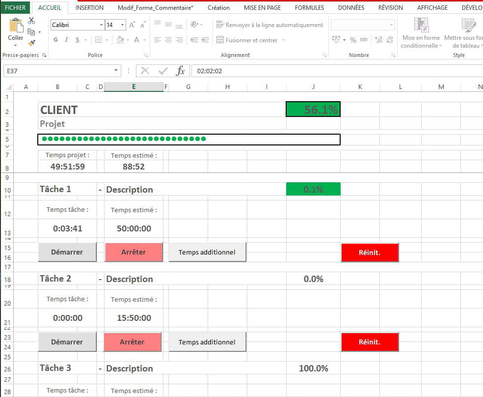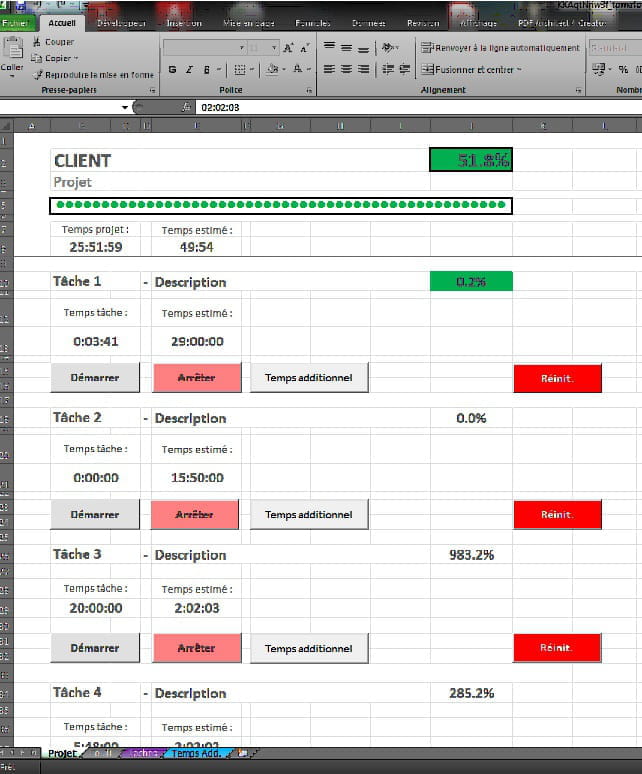 [Excel] Time Tracker Projets : Un timer par tâche