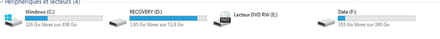 Pour l'espace disque C et F ont largement de quoi accueillir n'importe quelle application. C'est peut être la présence du D: qui pose soucis. Cette partition ne devrait même pas être affichée. Tu as un HP ? c'est souvent sur cette marque que la partition D: n'est pas cachée.