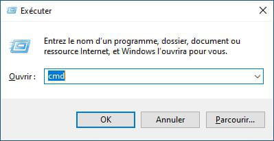 2) dans la saisie de cette fenêtre tapez "cmd" vous allez faire apparaitre une fenêtre intitulée " Invite de commandes" (fenêtre DOS)