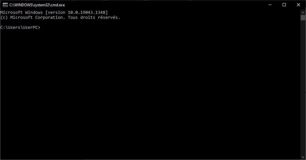 Une fois cette fenêtre ouverte, taper à la suite de C:\Users\UsersPC> ipconfig ou ipconfig /all et appuyez sur la touche "enter"