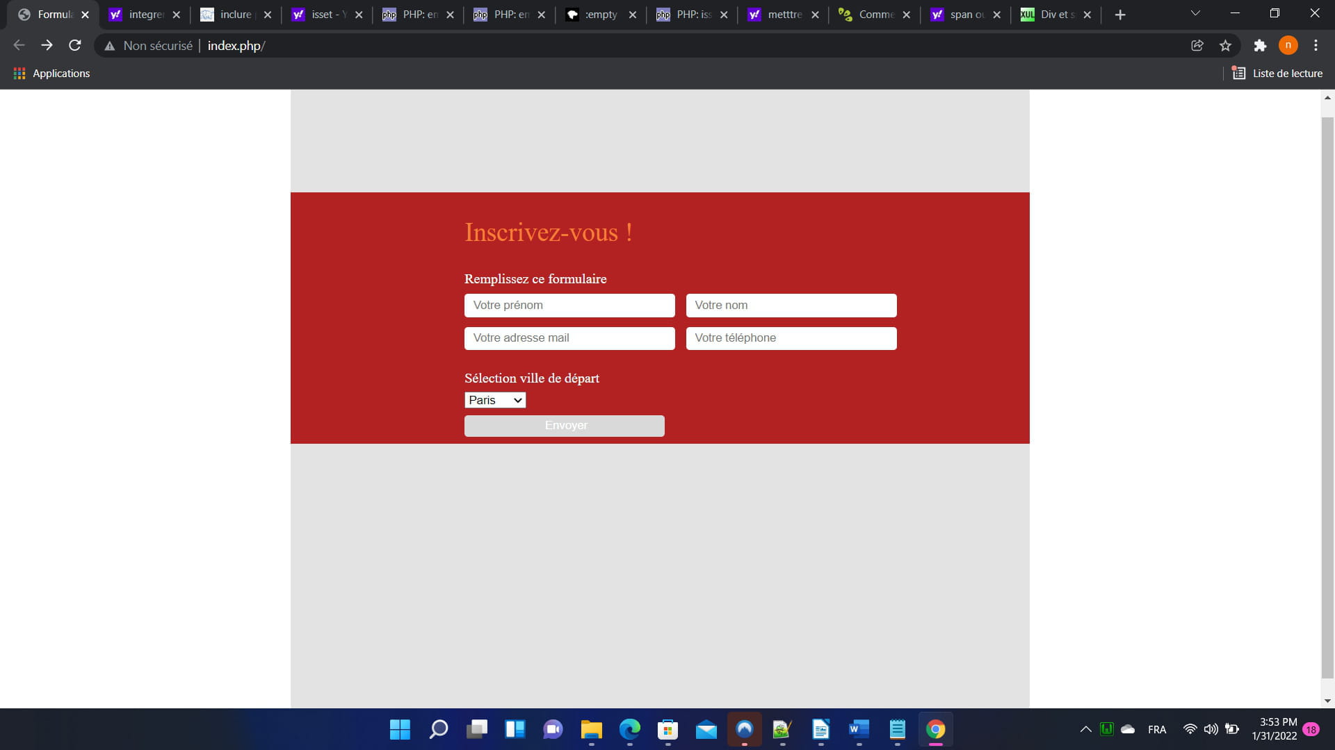 Je rencontre cependant un message d'erreur qui m'indique que mon index ville n'est pas définit ($ville = $_GET['ville']).