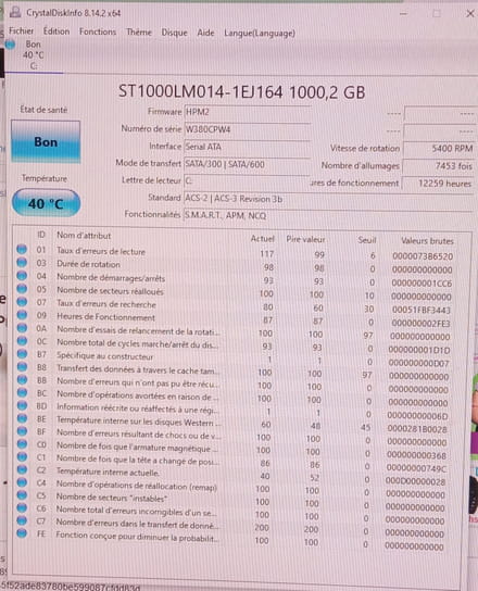 Donne l'état du disque, de préférence avec une copie d'écran.
