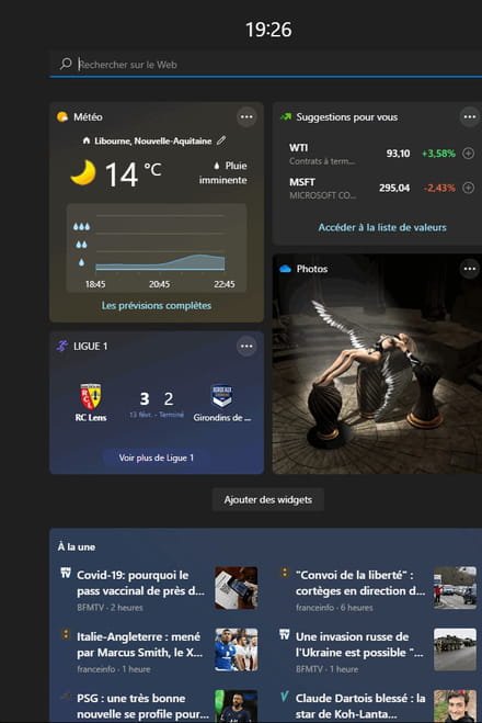 Dans la foulée je vérifie et je clique sur l'icône Widgets 11.