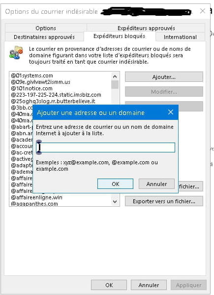 Bloquer une adresse ou un domaine dans Outlook :
