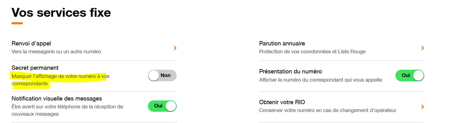 Dans la page qui s'ouvre descendez pour trouver votre Numéro de téléphone fixe