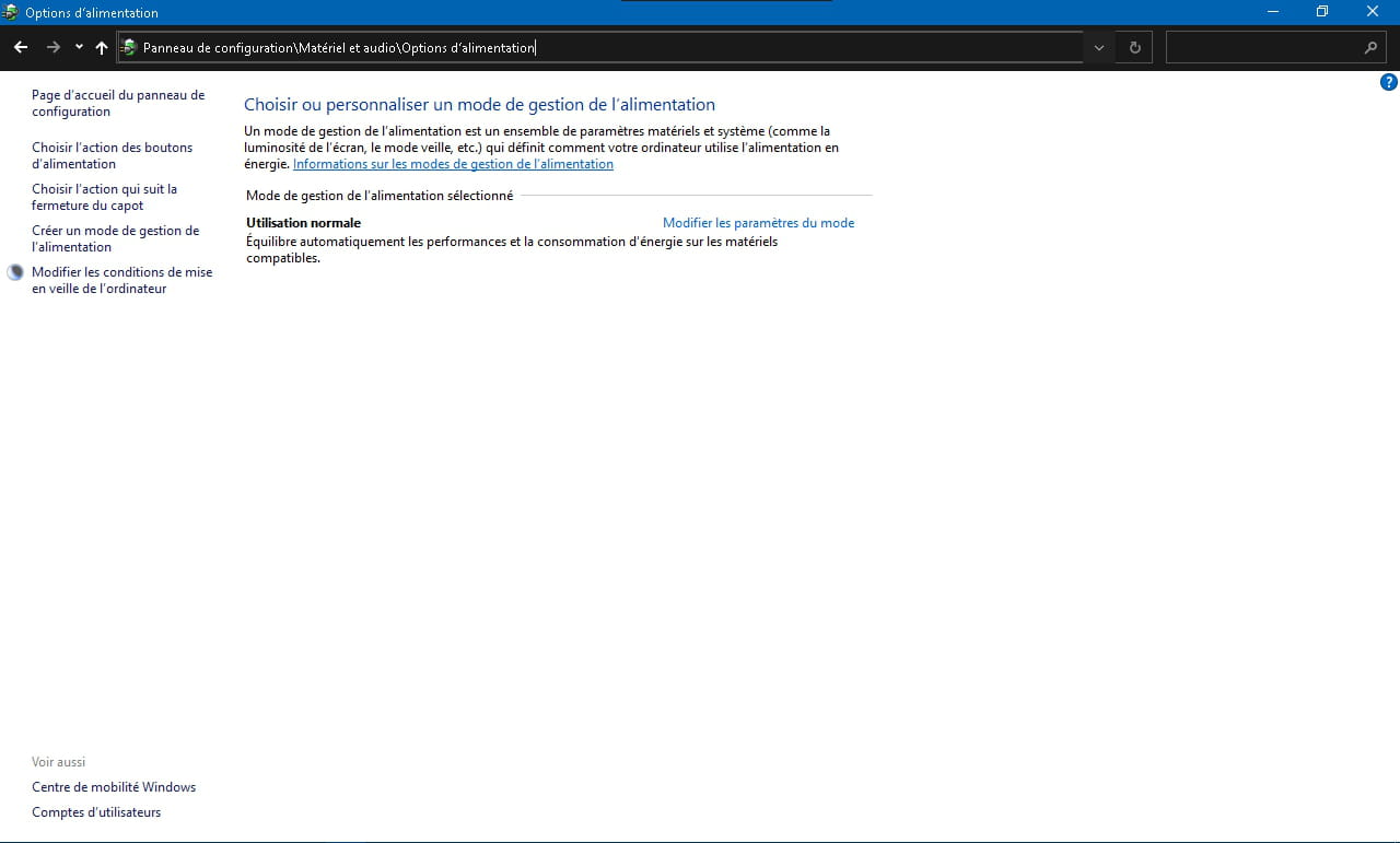 Impossible de changer de mode de gestion de l'alimentation